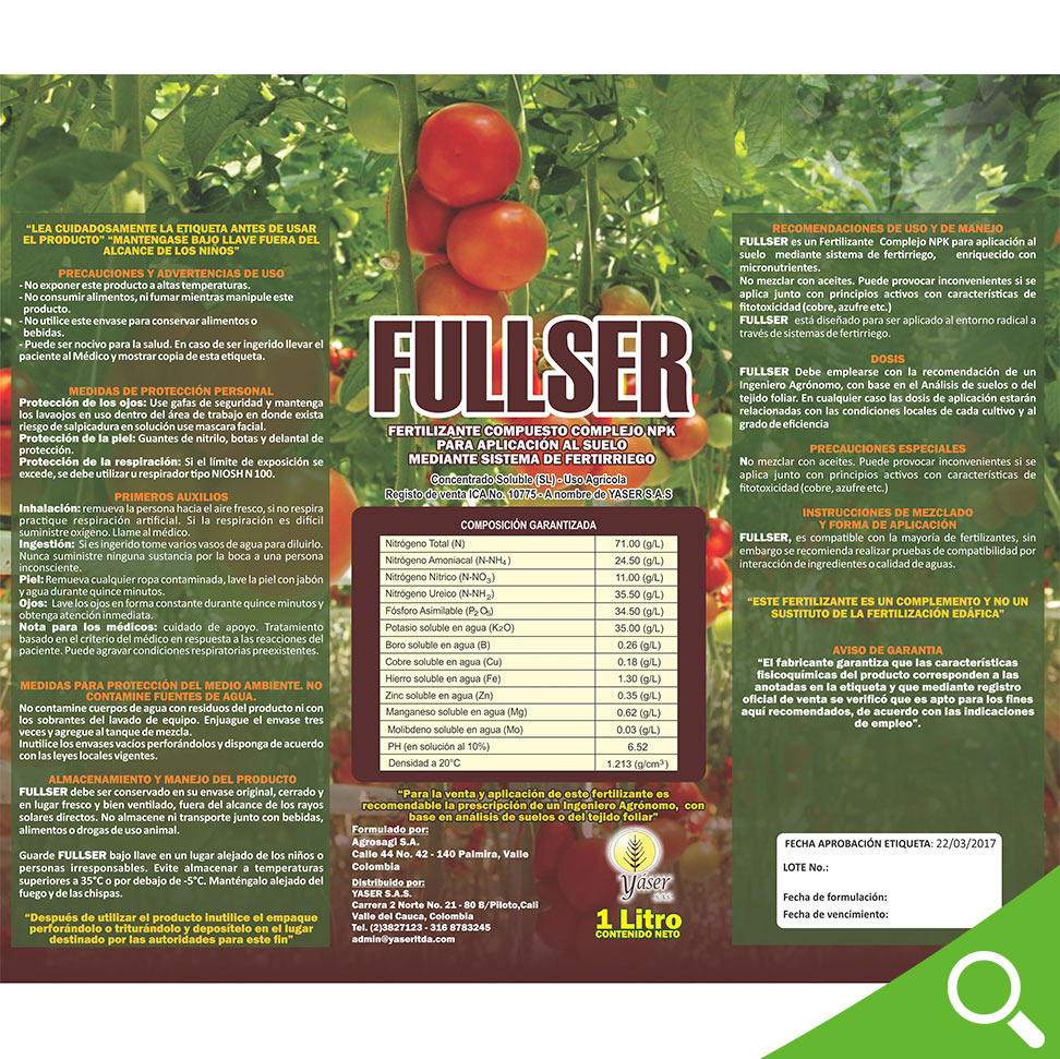 Fertilizante liquido concentrado soluble que se usa como un gran complemento para la bioestimulacion con AminoSer y enfocado en obtener una alta producción en sus cosechas.