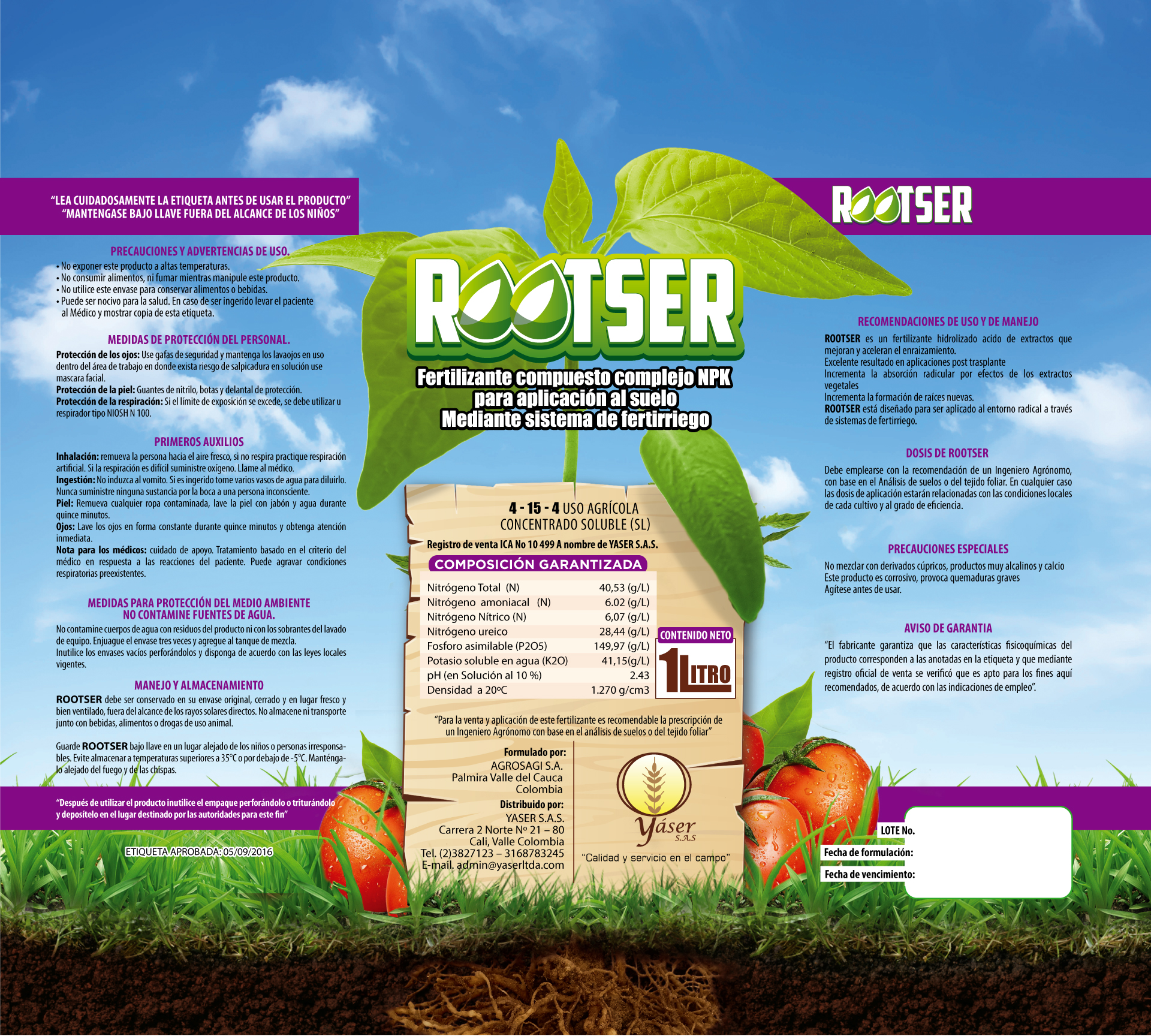 Fertilizante liquido concentrado soluble que se usa como un gran complemento para la bioestimulacion con RaizSer y enfocado en la producción radicular.